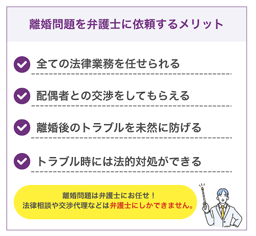 弁護士なら全ての法律業務を一任でき、離婚後のトラブルも未然に防げます。