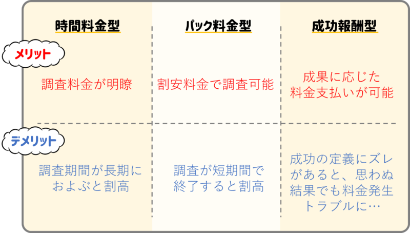 一方で、情報が少なく長期間の調査が必要になるかもしれないケースではパック料金型プランもおすすめです。