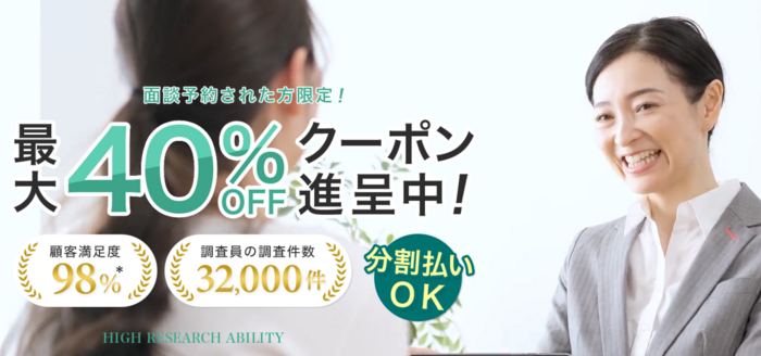 探偵に依頼するのは初めての方。初回依頼限定の割引あり。