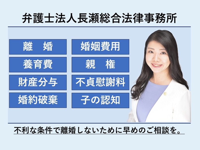 離婚や浮気・不倫慰謝料に関するお悩みは、一人で抱え込まず、ぜひ一度、弁護士法人長瀬総合法律事務所にご相談ください。私たちは、あなたの新たな一歩を力強くサポートすることをお約束します。