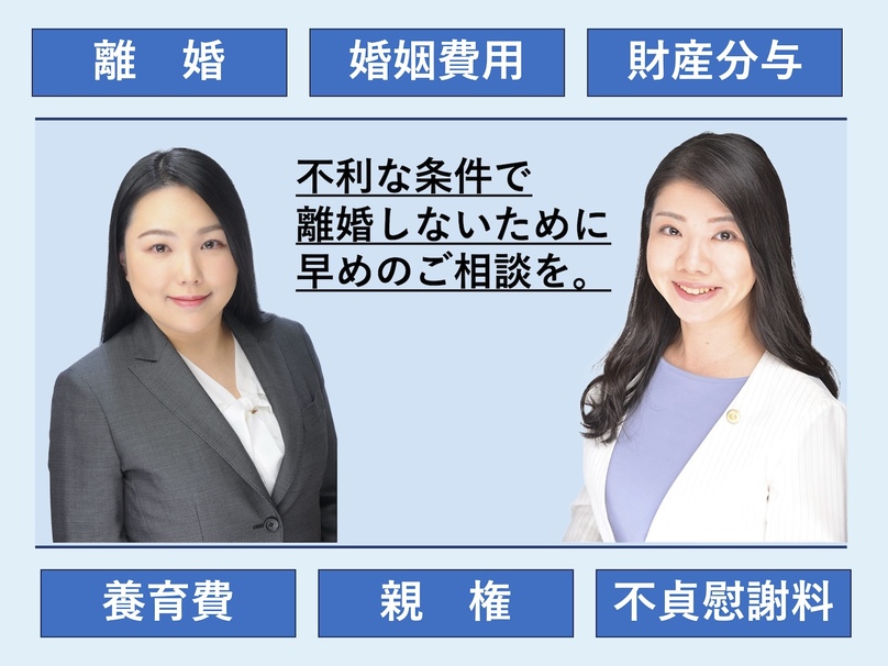 協議離婚、調停離婚、裁判離婚のいずれのケースにおいても、あなたの状況に合わせた最適な離婚方法を提案し、親権、養育費、財産分与、慰謝料など、離婚に伴うあらゆる条件について徹底的にサポートします。
